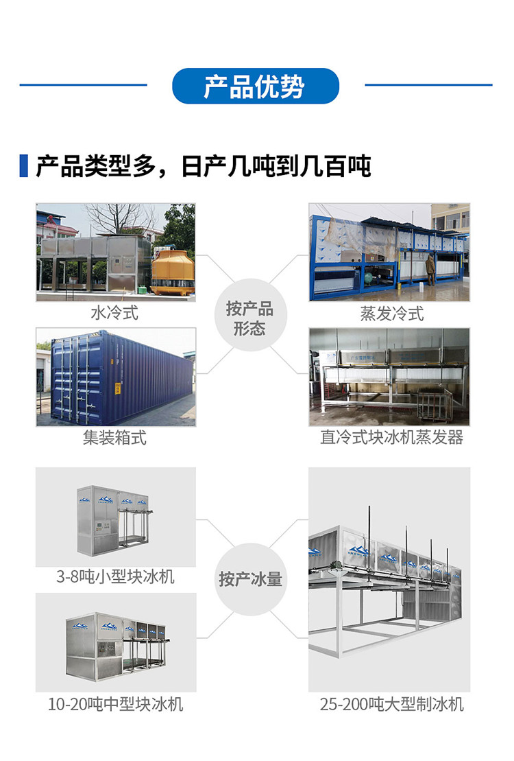 广泛应用于水产加工,食品加工,蔬菜水果保鲜,远洋捕捞等食品行业,混泥土搅拌站,道路桥梁施工,水电站大坝浇筑等...